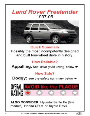 Free PDF Land Rover Freelander Dog And Lemon Guide 48244 PDF rtf Open Library